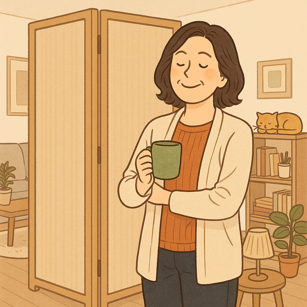 접이식 칸막이 하나 설치하니 이상하게도 마음도 딱 접힌다.